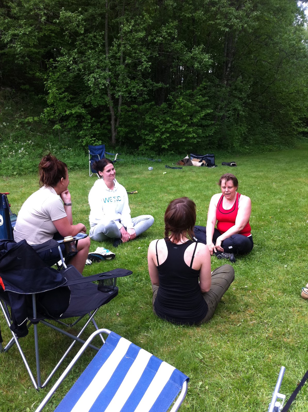 Vi har fått massor med bra tips och metoder att arbeta vidare med. Personligen tycker jag att det man fått till sig och stämmer med en själv och hunden det ska man jobba med. Träningen är så viktig del och då måste det vara roligt! Både för en själv och hunden. Hellre än glad och pigg och som piper ibland än en som går jämte som en blöt lovika-vante..
